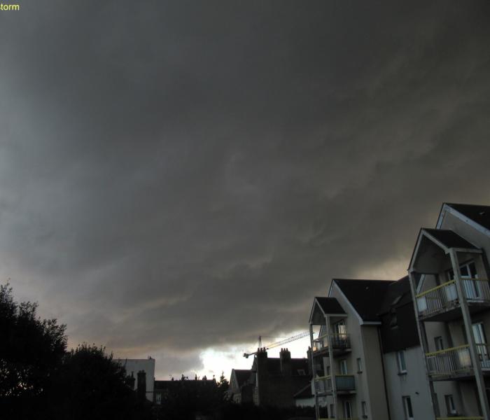 Arcus massif nocturne en approche par le Sud, suivi d'un unique mais puissant impact proche