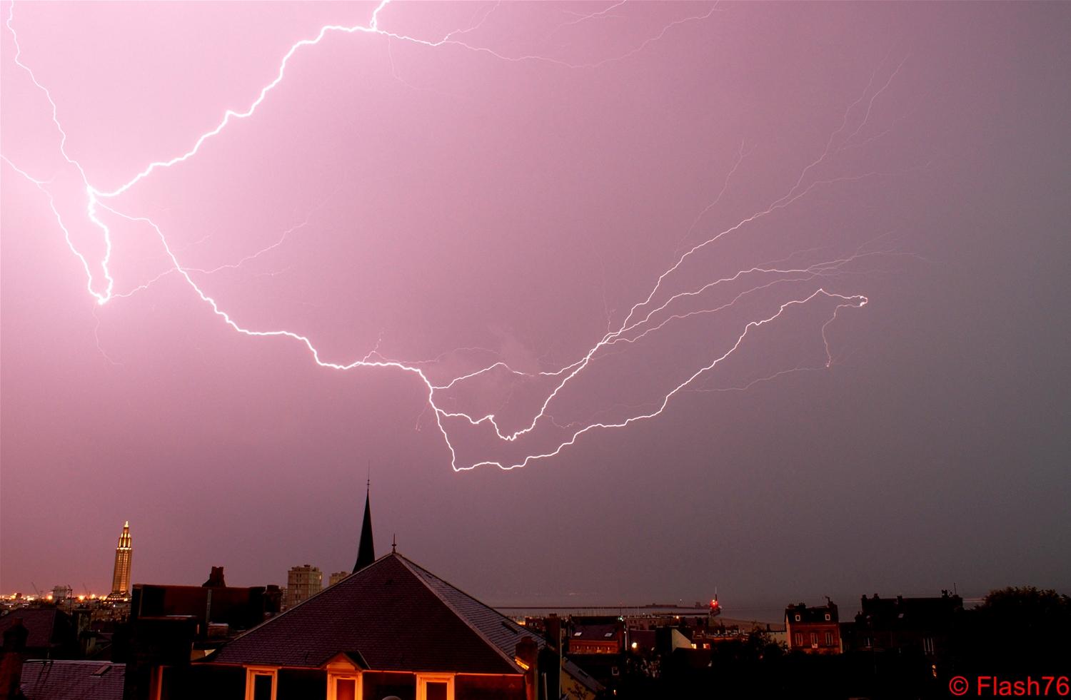 En journée, le ciel s'est voilé dans une atmosphère irrespirable, et en soirée, vers 21h30, une évolution orageuse s'observe, comme prévu, près du Havre.