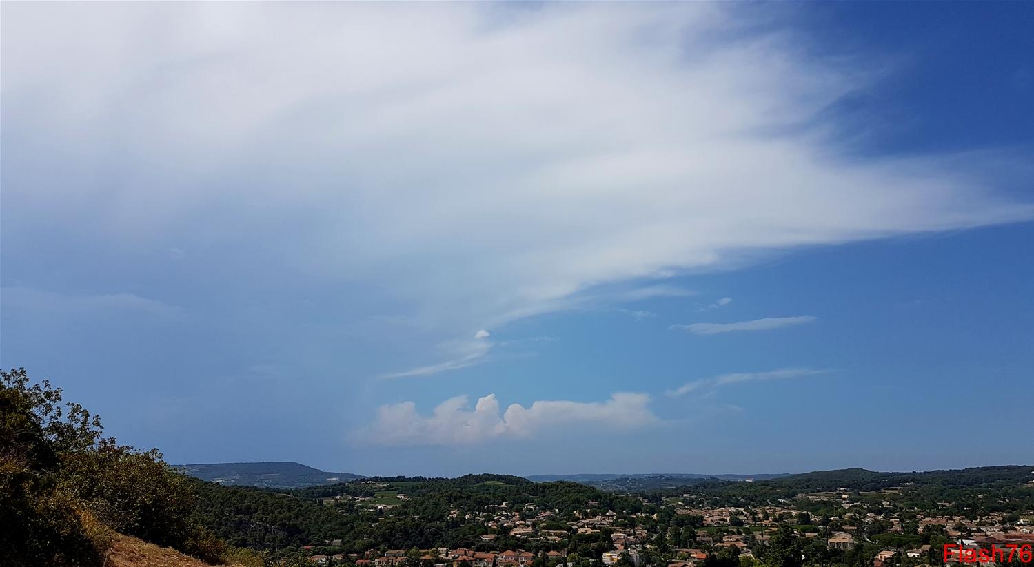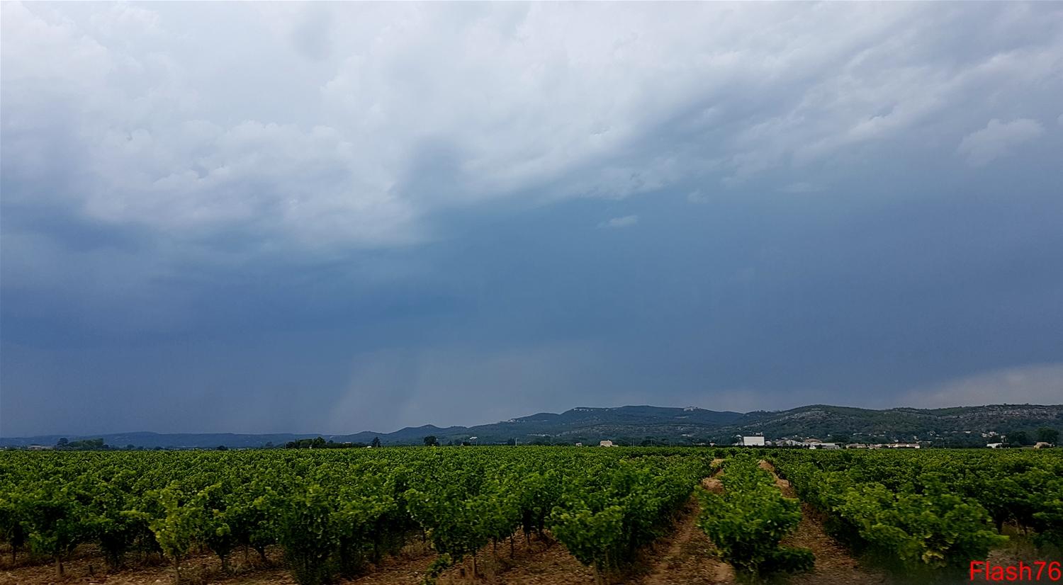 Vers 17h30, d'autres développements orageux se produisent tout autour de ma position à quelques kilomètres de Bagnols-sur-Cèze, dans une atmosphère toujours aussi lourde.